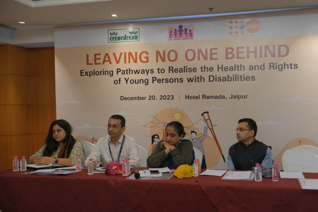 जयपुर। दिव्यांग युवाओं के लिए स्वास्थ्य और अधिकारों तक पहुंच बनाने के लिए हम सभी को मिलकर काम करना होगा। हमें उनके अधिकारों के लिए भी लड़ना होगा। अगर हम ऐसा नहीं कर पाए तो हालातों में सुधार लाना संभव नहीं हो सकेगा। यह कहना है संयुक्त राष्ट्र जनसंख्या कोष (यूएनएफपीए) के स्टेट हेड डॉ. दीपेश गुप्ता का। उन्होंने बुधवार को यूएनएफपीए की ओर से दिव्यांग युवाओं के लिए लीविंग नो वन बिहाइंड (किसी को पीछे न छोड़ना) विषय पर आयोजित एक दिवसीय राज्य स्तरीय कार्यशाला में यह बात कही। लोक संवाद संस्थान के सहयोग से आयोजित कार्यशाला में विभिन्न सामाजिक संगठनों, सीएसओ और एनजीओ के कार्यकर्ता, विषय विशेषज्ञ, राजस्थान के सरकारी विशेष विद्यालयों और महाविद्यालयों के प्राचार्य, सहायक व्यक्तियों के साथ विभिन्न दिव्यांग युवा, सीएसआर प्रतिनिधि और मीडियाकर्मियों ने सक्रिय भागीदारी की।