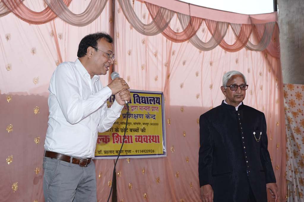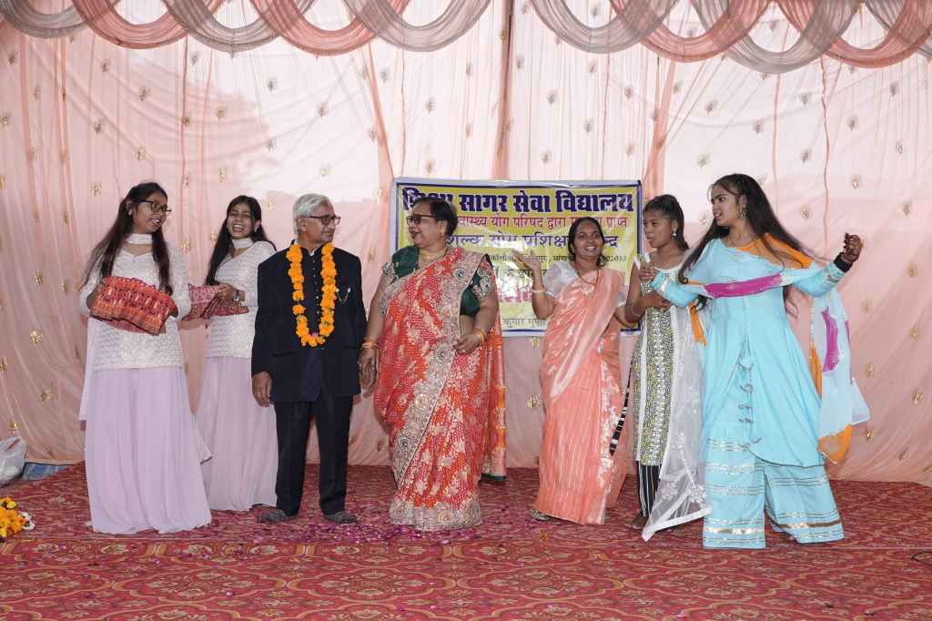 दिनांकः 02-03-2025 डॉ राधा गुप्ता एवं डॉ प्रहलाद कुमार गुप्ता द्वारा वंचित वर्ग के छोटे बच्चों के लिये अपने स्वयं के संसाधनों से निशुल्क संचालित गोविंदपुरा, सांगानेर स्थित शिक्षा सागर सेवा विद्यालय का वार्षिकोत्सव रविवार 2 मार्च, 2025 को धूमधाम से मनाया गया। विद्यालय के संचालक डॉ. प्रहलाद कुमार गुप्ता ने बताया कि दीप प्रज्ज्वलन तथा गणेश-सरस्वती वंदना के बाद वंचित वर्ग के 4 से 11 वर्ष तक के छोटे बच्चों द्वारा शरीर के समस्त अंगों के जोड़ो के व्यायाम, योगासन, सूर्यनमस्कार के साथ-साथ मनमोहक नृत्य प्रस्तुत किये। समारोह में बच्चों व स्थानीय बस्ती के परिवारजनों के साथ-साथ गुप्ता परिवार तथा अनेक गणमान्य अतिथियों सहित लगभग 200 से अधिक संख्या में उपस्थिति रही।