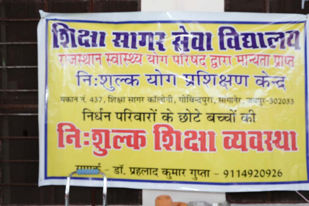 समारोह के सम्माननीय अतिथि अशोक गर्ग, राजस्थान स्वास्थ्य योग परिषद के अध्यक्ष दिनेश ख्ंडेलवाल, अग्रवाल समाज मानसरोवर के पूर्व अध्यक्ष लक्ष्मीचंद मित्तल आदि ने बच्चों की प्रस्तुति तथा विद्यालय द्वारा दी जा रही निशुल्क शिक्षा सेवा की सराहना की। वरिष्ठ अधिवक्ता शिवचरण गुप्ता ने विद्यालय के नियमित 40 बच्चों को स्कूल बैग एवं जनसम्पर्ककर्मी मनीष हूजा ने चित्रकारी का सामान वितरित किया। सभी ने भोजन प्रसादी ग्रहण की। समारोह में वरिष्ठ अधिवक्ता कैलाश रावत, आशा किरण संस्था के अध्यक्ष राधेश्याम गुप्ता, स्वास्थ्य योग परिषद के पूर्व अध्यक्ष राजेन्द्र छावड़ा, हरिचरण सिंहल, शिक्षा सागर कालोनी विकास समिति के अध्यक्ष मनोज कुमावत, राष्ट्रीय स्वयंसेवक संघ के सांगानेर विभाग कार्यवाह उत्तम जी, मालवीय भाग के सह-कार्यवाह गोपाल जी, सेवा भारती विद्यालय बक्सावाला के प्राचार्य रामेश्वर जी, अग्रवाल समाज प्रतापनगर के अध्यक्ष मोहनलाल अग्रवाल आदि गणमान्य व्यक्तियों की गरिमामयी उपस्थिति रही। विद्यालय की संरक्षक प्रोफेसर डॉ. राधा गुप्ता ने बताया कि वंचित वर्ग के निर्धन बच्चों को निःशुल्क शिक्षा देने के लिये जयपुर जिले की सांगानेर कस्बे की गोविन्दपुरा जेडीए कॉलोनी के पास स्थित शिक्षा सागर कॉलोनी में अपने स्वयं के भूखंड पर 3 टिन शैड कमरों का निर्माण करा कर अपने विवाह के वर्षगांठ की तिथि 26 फरवरी, 2017 को पूर्ण विधि-विधान से पूजा हवन कर विद्यालय की स्थापना की थी। कालोनी में अधिकांश परिवार कारीगर, बेलदार, सफाईकर्मी, वेल्डर, हैल्पर, सिलाईकर्मी, पेण्टर, कारपेण्टर आदि श्रमिक वर्ग के रहते हैं। विद्यालय को 8 वर्ष पूर्ण हो गये हैं और यह नौवां स्थापना दिवस मनाया गया। विद्यालय में प्रतिदिन 2 घंटे हिन्दी, अंग्रेजी व गणित की शिक्षा के साथ-साथ योगासन व भारतीय संस्कारों की शिक्षा भी दी जाती है।