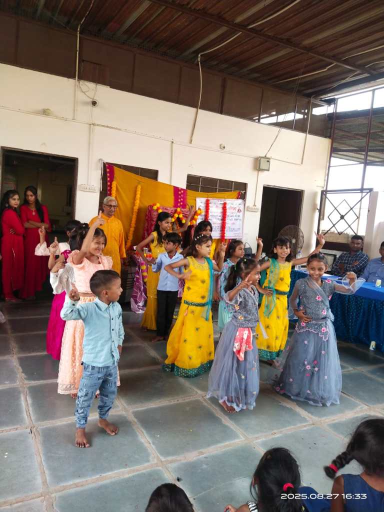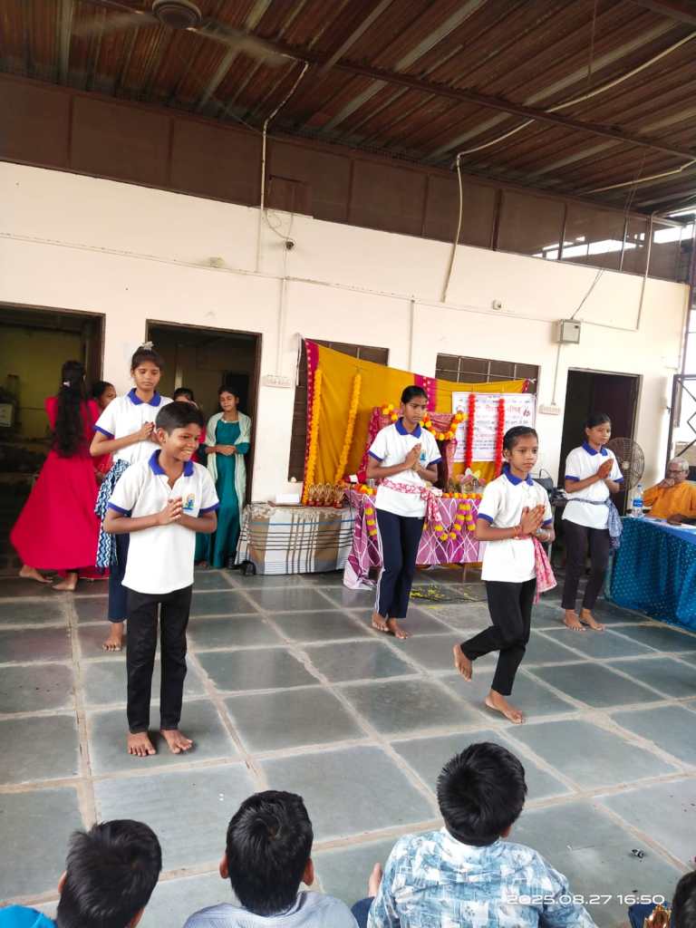 समारोह के प्रारंभ में बच्चों ने दीप मंत्र, विष्णु मंत्र, गुरू मंत्र, गायत्री मंत्र, भोजन मंत्र, शांति मंत्र एवं सरस्वती वंदना की प्रस्तुति दी। भजनों व देशभक्ति गीतों पर आधारित युगल व समूह नृत्य प्रस्तुत किये जिनमें घर में पधारो गजानंद जी , ओ माई फ्रेंड गणेशा, वो कृष्ण है, बंसी बजैया कृष्ण कन्हैया, देश रंगीला, चुन चुन करती आई चिड़िया, अंत में योग नृत्य के जरिये विभिन्न प्रकार के आसनों का प्रदर्शन किया।